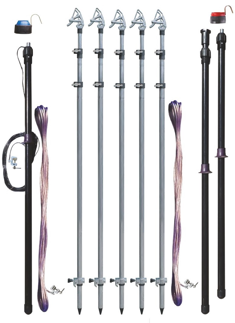 - 5 фазных зажимов с алюминиевыми телескопическими штангами,