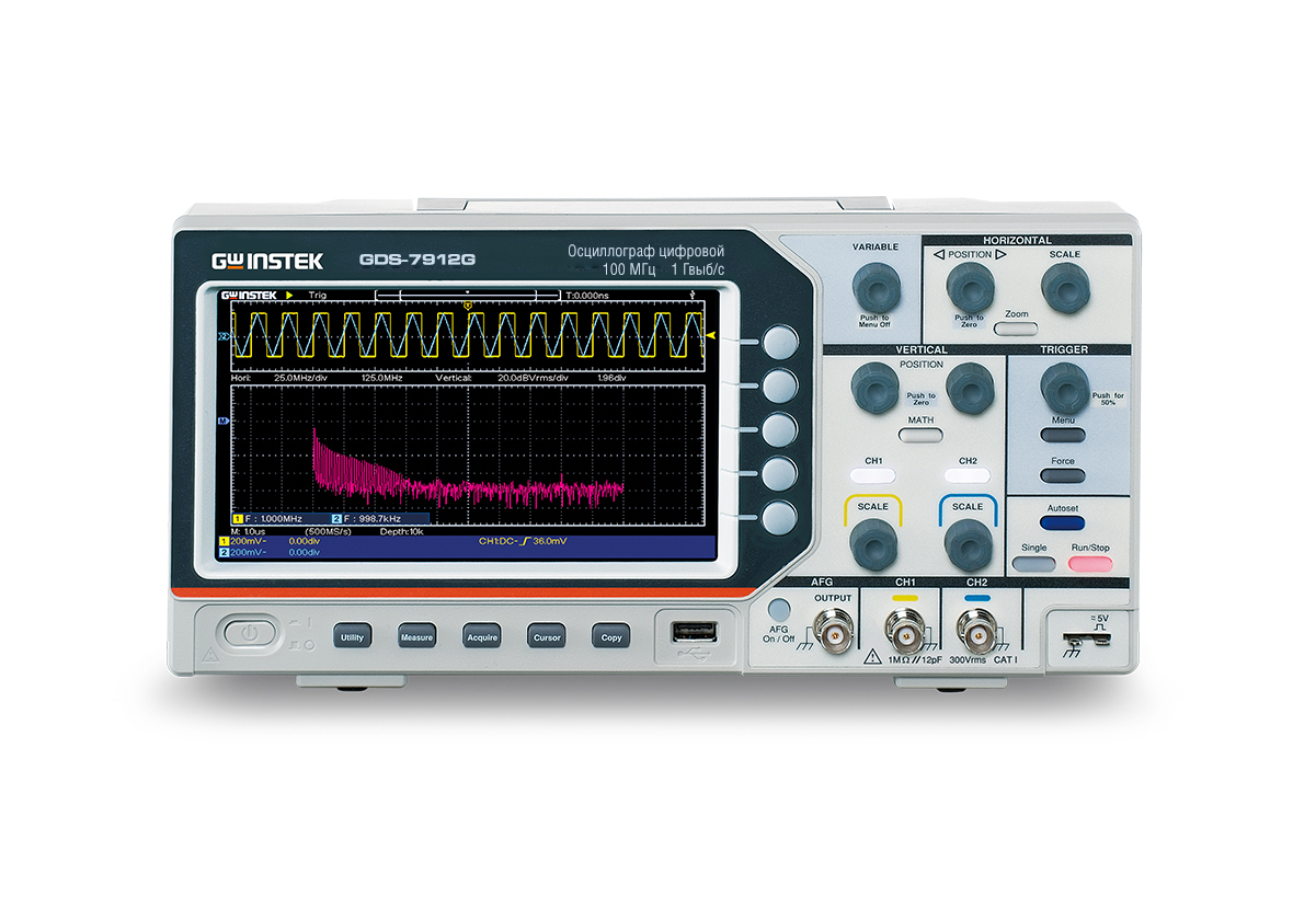 - Макс. частота дискретизации 1 ГГц/кан на длине записи 1000 точек