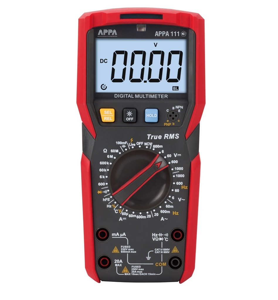 True RMS.Базовая погрешность ± 0,5 %. Постоянное / Переменно напряжение 0,1 мВ...1000 В. Постоянный / Переменный ток 10 мкА...20 А. Сопротивление 0,1 Ом...60 МОм. Емкость 1 пФ...100 мФ. Частота 0,001 Гц...10 МГц. Коэффициент заполнения импульсов 0,1 … 99 %. Температура -40...+1000 °С. Прозвон цепи. Тест диодов. Питание 1,5 В (ААА) х 4 шт. Габариты 175 х 81 х 48,5 мм. Вес 345 грамм