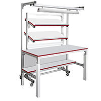 Позволяет организовать мобильный склад на рабочем месте. Модульная конструкция позволяет оснастить стол дополнительным оборудованием: подвесной металлической тумбой, электропанелью на 6, 8, 12 розеток, столом приставным угловым СПУ- КП и другим дополнительным оборудованием и оснащением. Изготавливается в промышленном и антистатическом исполнении