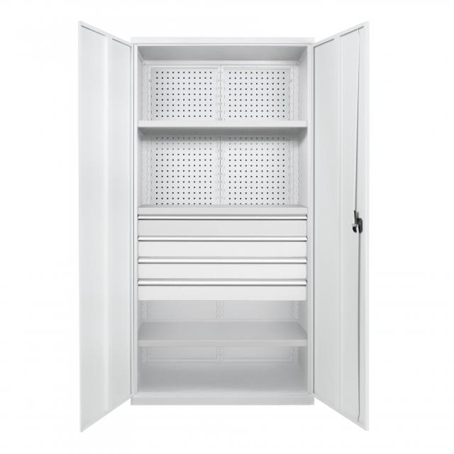 Предназначен для хранения инструментов и рабочих принадлежностей. На задней стенке шкафа расположена перфопанель, на которой могут быть размещены крючки для инструментов. 4 выдвижных ящика на телескопических направляющих