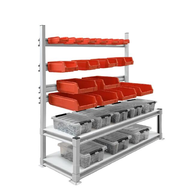 Предназначен для хранения тяжелых грузов на полках стеллажа и комплектующих в лотках. В стандартной комплектации стеллаж стойка изготавливается с 2 полками и 3 планками для лотков. Максимальная нагрузка на полку — до 350 кг; на планку — до 50 кг. Изготавливается в промышленном и антистатическом исполнении