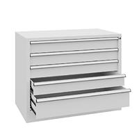 Предназначен для упорядоченного хранения инструментов, аксессуаров, мелких предметов. 5 выдвижных ящиков (ШхВхГ): 1 шт. — 946 х 178 х 542 мм; 4 шт. — 946 х 118 х 542 мм. Изготавливается в промышленном и антистатическом исполнении