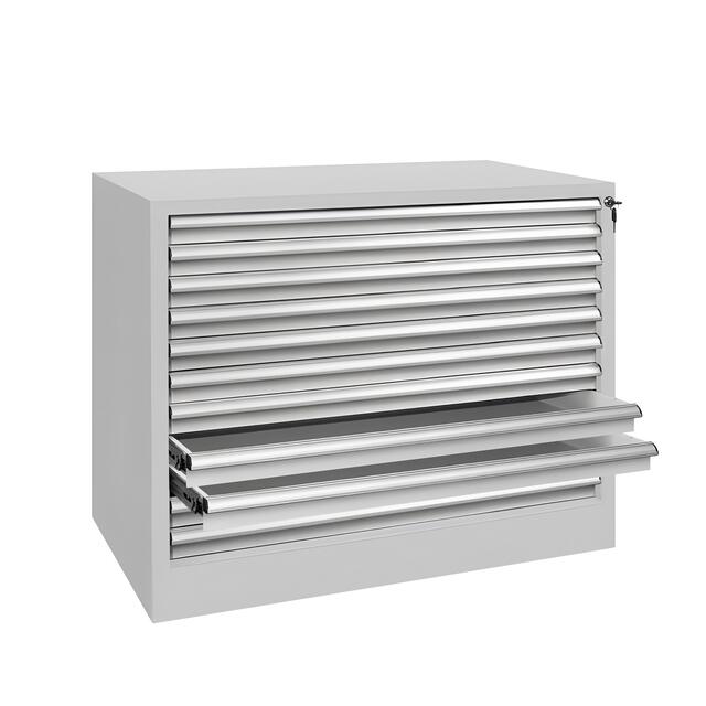 Предназначен для упорядоченного хранения инструментов, аксессуаров, мелких предметов. 11 выдвижных ящиков — 946 х 58 х 542мм (ШхВхГ). Изготавливается в промышленном и антистатическом исполнении