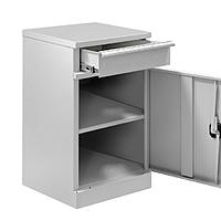 Тумба металлическая может быть использована для работы и организации хранения материалов как в составе рабочих мест, так и в виде отдельно используемой единицы. Внутреннее пространство тумбы, разделенное с помощью полки на две части, позволяет организовать хранение крупных материалов и инструментов.