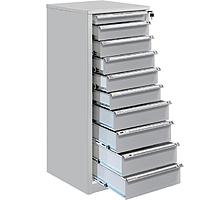 Тумба металлическая используется для упорядоченного хранения и защиты от пыли и грязи материалов, применяемых в повседневной работе. Вместе с дополнительным оснащением в виде системы перегородок и маркировки (обозначения ящиков) тумба позволяет организовать хранение материалов на своих местах. Ящики защищают рабочие материалы и инструменты от загрязнения и сохраняют их в исходном состоянии.