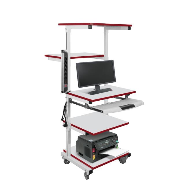 Стойка подкатная для оборудования СМО предназначена для размещения различного оборудования и его дальнейшего перемещения в рабочей зоне. Стойка СМО оснащена пятью полками, раздельно регулируемыми по высоте, и выдвижной полкой под клавиатуру. Высота стойки — 1650 мм, ширина основания — 600 мм, глубина основания — 500 мм. Имеются четыре колесные опоры, две из которых с механизмом фиксации. Конструкция позволяет оснастить подкатную стойку дополнительными полками и электропанелью на 6, 8, 12 розеток.