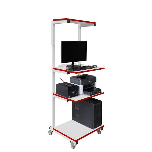Стойка оператора мобильная СОМ — это универсальное, мобильное решение в линейке промышленной и антистатической мебели торговой марки Gresson®️. Стойку оператора СОМ можно использовать в различных отраслях промышленности, от учебных заведений, НИИ и лабораторий, сервисных, логистических и сортировочных центров, до складских помещений и зон выдачи товаров. Стойка СОМ имеет три полки габаритом 470*600 мм, на одной из которых установлен задний ограничитель, и одну верхнюю полку габаритом 300*600 мм. Г-образный кронштейн верхней полки предусматривает увеличение высоты стойки от 1600 до 1900 мм. Все полки (кроме нижней) имеют плавную регулировку высоты. Мобильная стойка оснащена четырьмя колесными опорами, две из которых с механизмом фиксации. Материал каркаса — сталь, покрытая износостойкой порошковой краской. Прочная и долговечная конструкция. Материал полок — ДСП, покрытая прочным износостойким пластиком.