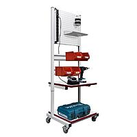 Стойка подкатная универсальная СПУ используется для хранения и перемещения инструментов, материалов и комплектующих в рабочем пространстве.