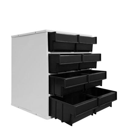Предназначен для хранения, размещения различного вида инструмента, мелких комплектующих, деталей, а также компонентов. Комплектуется двумя видами пластиковых кейсов: узкими и широкими, либо по 8, либо по 16 штук. Изготавливается в антистатическом исполнении