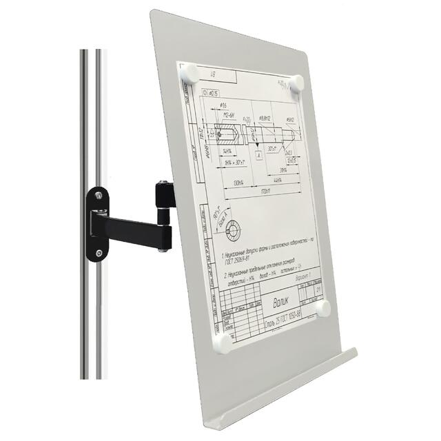 Предназначена для размещения чертежно-технической документации. Конструкция кронштейна позволяет расположить подставку под чертежи на нужном расстоянии от места крепления и под необходимым углом наклона