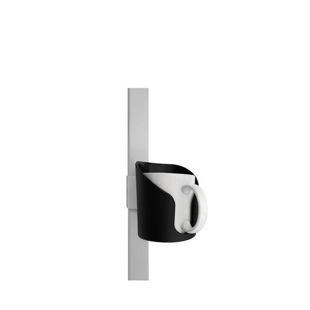 Подставку можно расположить на рабочем столе. Подходит для емкостей разного диаметра. Внутренняя часть вмещает стаканы, бутылки и кружки диаметром до 8 см. Имеет вырез под ручку кружки. Конструкция держателя предусматривает надежное размещение во избежание опрокидывания, обеспечивая фиксацию в вертикальном положении. С помощью кронштейна его можно расположить в удобном месте и отрегулировать высоту по боковой стойке стола.