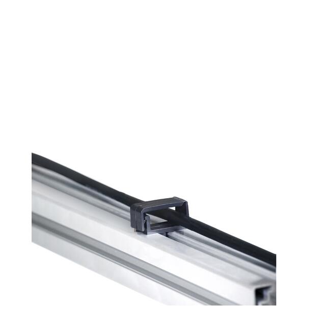 Клипсы для проводов имеют одно отделение в КП-1 и два отделения в клипсе КП-2. Для фиксации клипсы в любом удобном месте по всей длине конструкционного профиля нужно вставить её в паз и повернуть на 90 градусов.