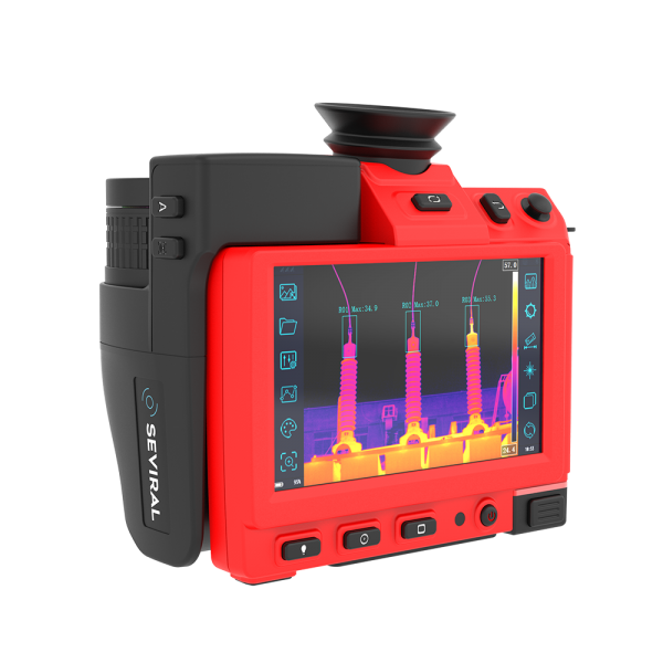 - Высочайшая эффективность: с помощью функционала камеры SEVIRAL T1200 вы можете провести анализ сделанных изображений. На большом сенсорном 15 сантиметровом экране вы можете выделить необходимые области, линии и точки и узнать всю интересующую вас информацию по температуре.