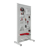 Стандартный шаг перфорации обеспечивает совместимость с широким ассортиментом держателей и навесных элементов. Конструкция состоит из панелей и несущих стоек, которые образуют прочную систему хранения.