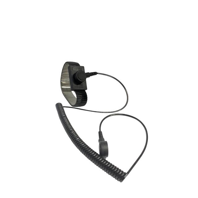 Составной частью антистатического браслета является провод заземления, который соединяет браслет с «землей». Изготовлен он из изолированного провода, один конец которого подключается к браслету, а второй к соединительной точке «земле». Заземляющий провод содержит резистор 1,0-10 Ом, впаянный в провод рядом с точкой соединения провода с браслетом, который ограничивает ток. Провод имеет вид спирали, которая при необходимости растягивается увеличивая длину провода. Длина провода в растянутом положении — 1,9 метра.