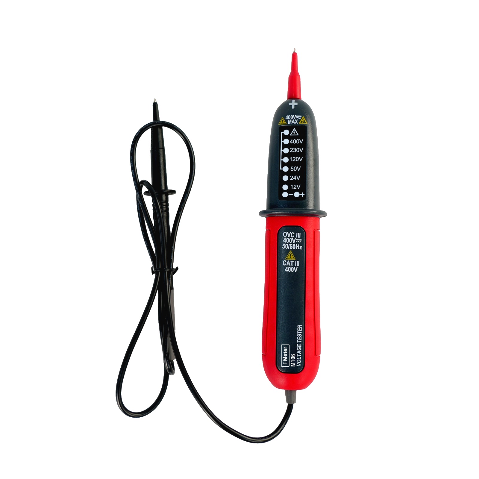 Светодиодная индикация диапазонов значений переменного и постоянного (с указанием полярности) напряжений 12 | 24 | 50 | 120 | 230 | 400 В. Сигнализация о превышении допустимого напряжения. Питание 1,5 В (AAA) х 2 шт. Габариты 223 х 40 х 32 мм. Вес 95 грамм