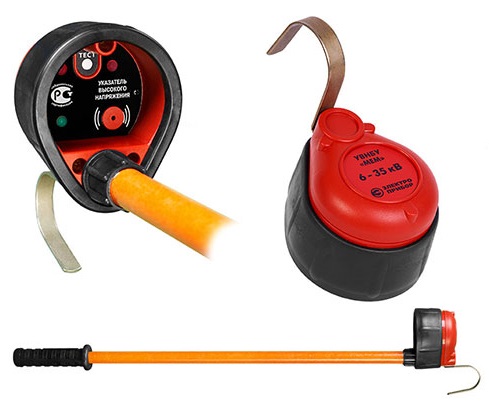 Имеет режим самоконтроля и индикацию разряда батареи. Поставляется в комплекте со штангами соответствующего класса напряжения.