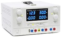 3 канала (2 регулируемых, 1 фиксированный). 1 и 2 каналы: Напряжение 0...30 В. Ток0...3 А. 3 канал: Напряжение 5 В. Ток 3 А. Максимальная мощность 195 Вт.4 цифровых 3-х разрядных LED дисплея. Последовательное (60 В / 3 А) и параллельное (30 В / 6 А) соединение регулируемых каналов. Трекинг режим. Питание 220 В / 50 Гц. Габаритные размеры 315 x 255 х 155 мм. Вес 8 кг